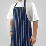 100% Polyester Navy/White Stripe Butcher's Bib Apron