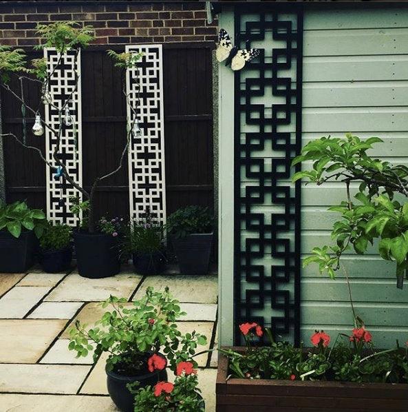 The Cubed Garden Trellis offers a gorgeous accent for your garden evoking a fresh take on garden trellising with its modern geometric design. Made of composite wood, this contemporary trellis offers the warmth and luxury of a wood finish, with the performance and durability of plastic.