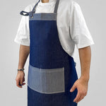 - Indigo Contrast Denim Bib Apron with Eyelet and Centre Split Pocket