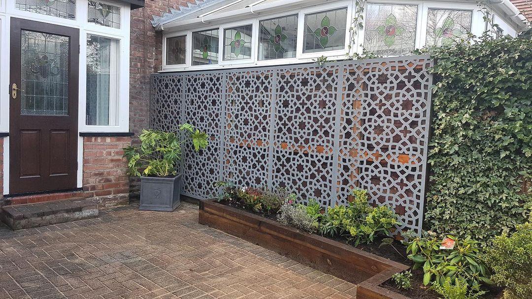 Drawing on architectural heritage, the Alhambra outdoor screen combines aesthetic sophistication with practical functionality. Its 180x90cm dimensions and 5mm grey construction deliver both visual impact and durability, making it an ideal solution for creating defined outdoor spaces whilst maintaining contemporary elegance. The intricate geometric patterns, rooted in traditional Arabic design principles, establish a striking focal point that enhances garden landscapes with refined character and enhanced privacy screening.